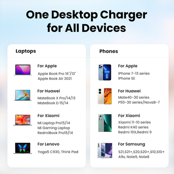 Хаб заряжает все устройства - такие как наушники, смартфоны, ноутбуки и прочие требущие зарядку от USB или USB-C разъемов.