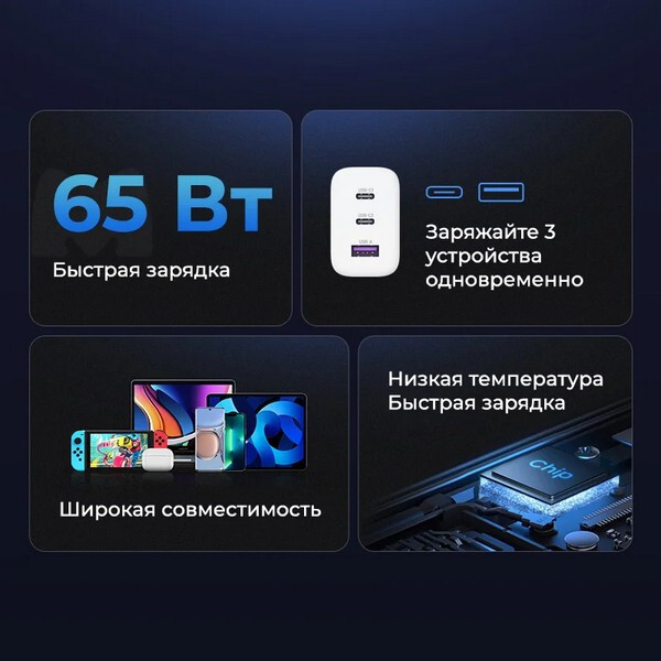 Зарядное устройство PD мощностью 65 Вт оснащено динамическим датчиком температуры для полной защиты. Оно может контролировать температуру и автоматически регулировать мощность, которую можно безопасно заряжать ночью для защиты и продления срока службы устройства. Это зарядное устройство совместимо с MacBook Pro, Macbook Air, iPad Pro, iPad Air Air, iPhone 15/14/13/12/11 / X / XS / XS MAX / 8, Galaxy S23 / S22 / S21 / S20 / S20+ /S10 / S10+ Series, Switch, Steam Deck, Pixel и другими устройствами.