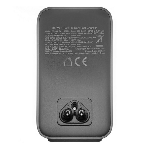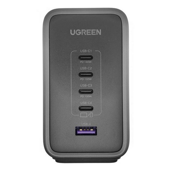 Сетевое зарядное устройство Ugreen CD333 Nexode 300W 5-Port PD GaN (90903B) серый - инновационный зарядник мощностью 300 Вт с поддержкой скорости зарядки PD 3.1, обеспечивающий максимальную выходную мощность до 140 Вт для USB-C1 и может заряжать MacBook Pro 2021-2024 годов 16 дюймов с 0 до 56% за 30 минут. При одновременном использовании USB C1, C2, C3 можно достичь максимальной мощности 300 Вт (140 Вт + 100 Вт + 60 Вт).