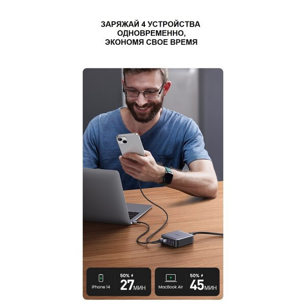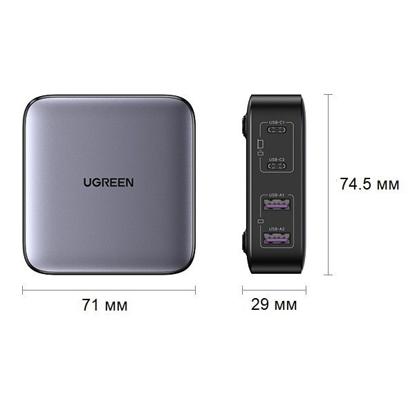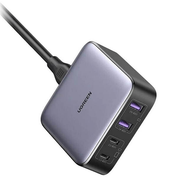 Сетевое зарядное устройство Ugreen Nexode CD327 2хUSB-A + 2хUSB-C 65W Desktop Fast Charger (90747) серый позволяет производить зарядку мощностью до 65 Вт. Вы можете удобно разместить его на своём столе для подключения устройств, требующих зарядки, в зависимости от ваших потребностей. Оно поддерживает мощную зарядку и позволяет подключать до 4 устройств одновременно.