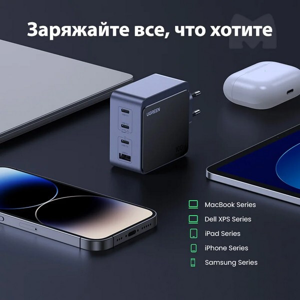Сетевое зарядное устройство Ugreen X565 Nexode S 100W USB-A+3*USB-C GaN (35043) серый - это компактное и мощное решение для зарядки. Благодаря технологии нитрида галлия (GaN) оно занимает меньше места, выделяет меньше тепла и обеспечивает высокую энергоэффективность. Одновременно можно заряжать до 4 устройств через порты USB-A и USB-C, все с поддержкой быстрой зарядки. Совместимо с ноутбуками, планшетами, смартфонами и наушниками. Интеллектуальное распределение мощности и защита от перегрева, перезарядки и короткого замыкания обеспечивают безопасность ваших устройств.