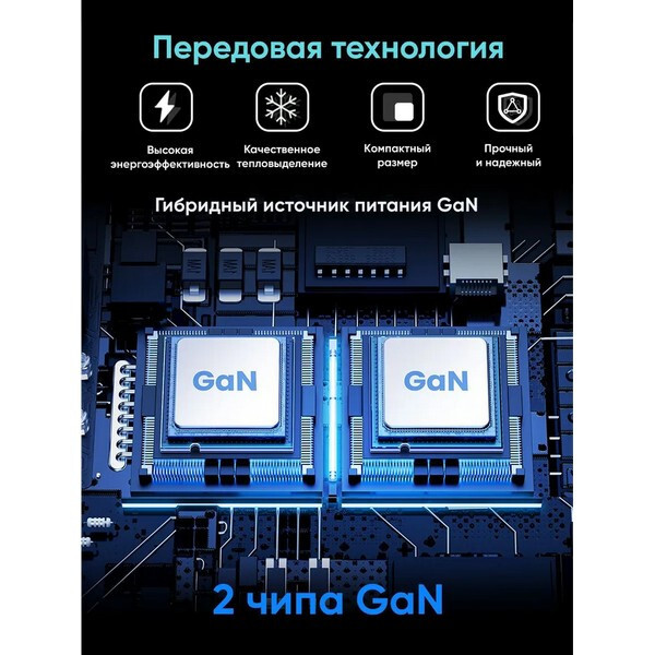 Благодаря передовой технологии GaN (нитрид галлия) оно сочетает высокую мощность 200W с малыми размерами, что делает его идеальным спутником как в путешествиях, так и в повседневном использовании. Устройство оснащено четырьмя портами для зарядки: тремя USB-C и одним USB-A, что позволяет одновременно подключать ноутбук, смартфон, планшет и другие устройства. Максимальная суммарная мощность зарядки достигает 200W при совместном использовании всех портов. Устройство автоматически оптимизирует распределение мощности между подключенными гаджетами, обеспечивая каждому из них необходимые параметры тока и напряжения.