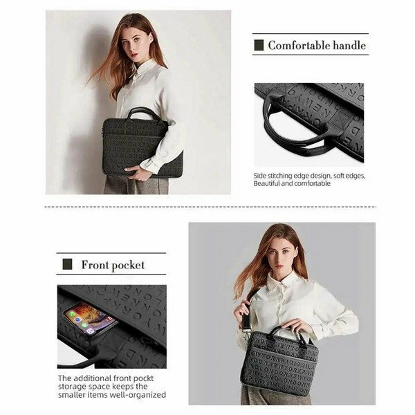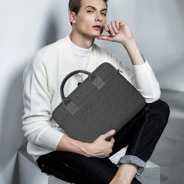 Сумка для ноутбука Wiwu изготовлена из экологичного материала с водоотталкивающей пропиткой устойчивого к истиранию. По всему периметру декорирована вставкой из эко-кожи в тон цвета сумки.