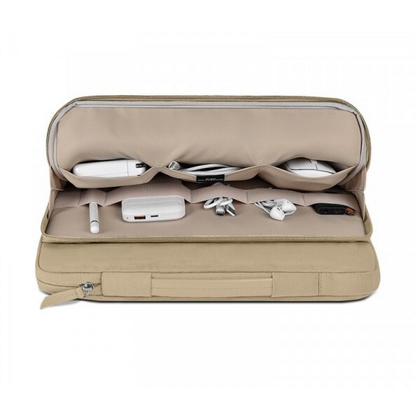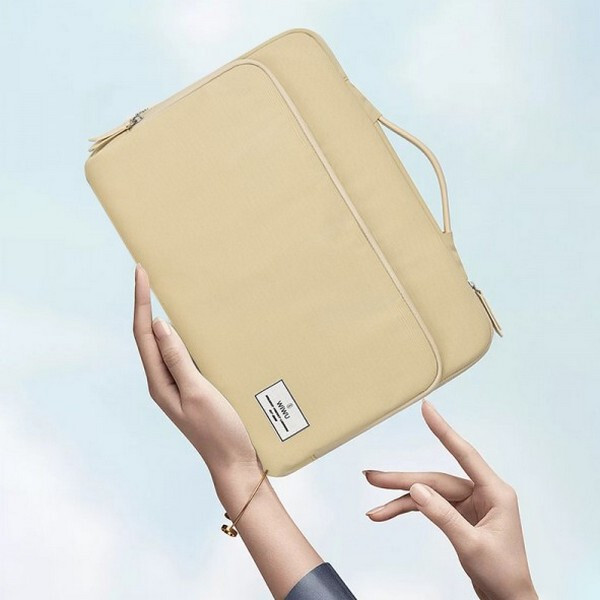 Сумка для ноутбука WiWU Ora Laptop Sleeve 14.2" Beige (OS14.2LBE) изготовлена из 450D полиэстера, водонепроницаемая.