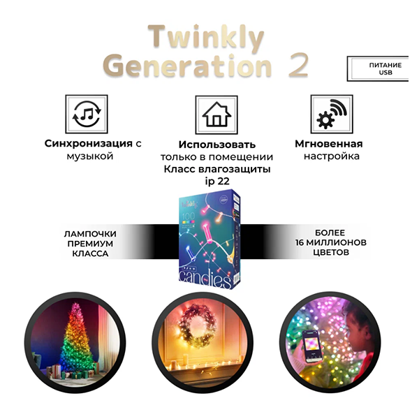 Блестящие эффекты - многоцветные светодиоды Twinkly - это чистейшее волшебство с непревзойденной яркостью и переливами более 16 миллионов цветов.