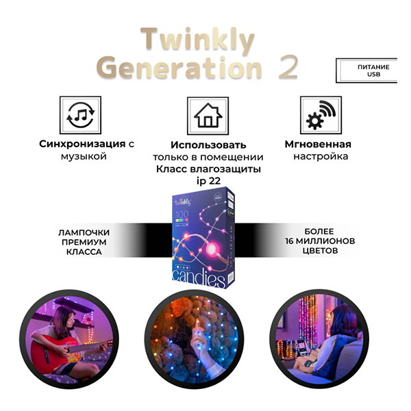 Блестящие эффекты - многоцветные светодиоды Twinkly - это чистейшее волшебство с непревзойденной яркостью и переливами более 16 миллионов цветов.