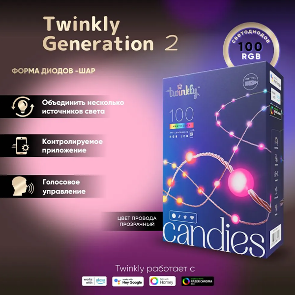 Умная гирлянда Twinkly Candies Pearls RGB 100 (TWKP100RGB-T)