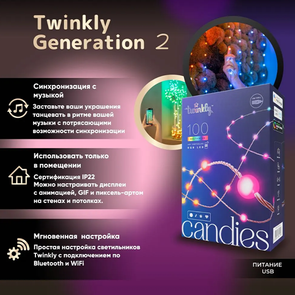 удобная настройка лампочек Twinkly с помощью Bluetooth® и WiFi