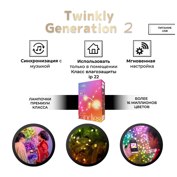 Блестящие эффекты - многоцветные светодиоды Twinkly - это чистейшее волшебство с непревзойденной яркостью и переливами более 16 миллионов цветов.
