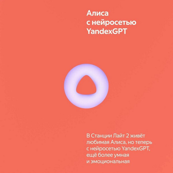 Умная колонка Яндекс Станция Лайт 2 (YNDX-00026ORG) коралловый выполнена в корпусе из пластика с покрытием soft-touch. Для устойчивости на поверхности дно оснащено силиконовой насадкой. Устройство рассчитано на детскую аудиторию. Модель мощностью 6 Вт оборудована микрофоном, динамиком, поэтому она подходит для общения с детьми. Колонка может рассказать сказку или включить музыку. Благодаря нейросети YandexGPT она ответит на любые вопросы. Ассистент меняет интонацию, когда вы говорите о веселом или грустном.