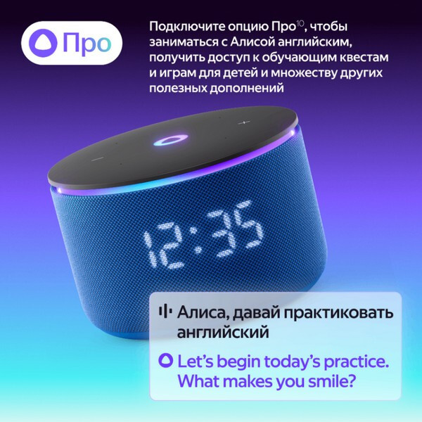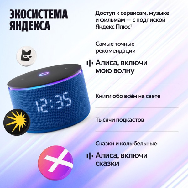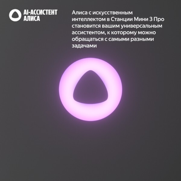 Алиса с искусственным интеллектом в Станции Мини 3 Про умеет так много: она найдёт и включит, что попросите — музыку, аудиокниги, подкасты — и подберёт рекомендации по вашим интересам. Задавайте самые разные вопросы и получайте понятные и подробные ответы. Можете даже давать ей сразу несколько команд — Алиса поймёт их и выполнит, например: «Алиса, включи плейлист для поднятия настроения и сделай звук на максимум».