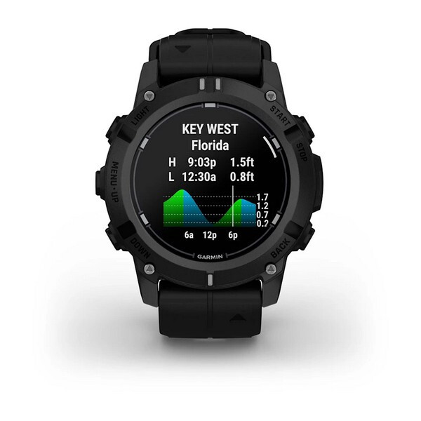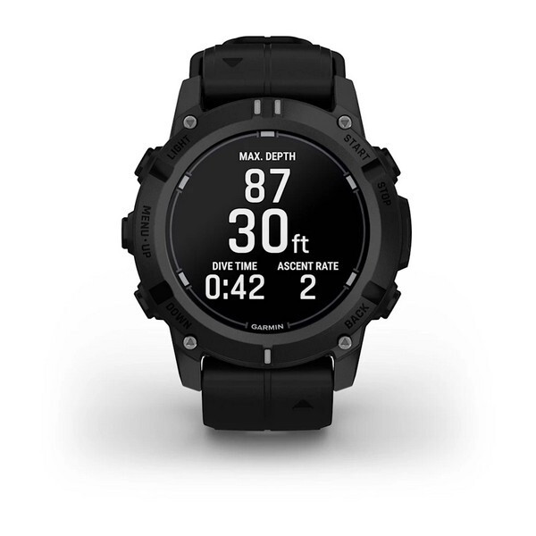 1,2-дюймовый AMOLED-дисплей обеспечивает легкое чтение на любой глубине, оснащен сапфировым стеклом и герметичными кнопками, а также выдерживает погружение под воду до 10 АТМ.
