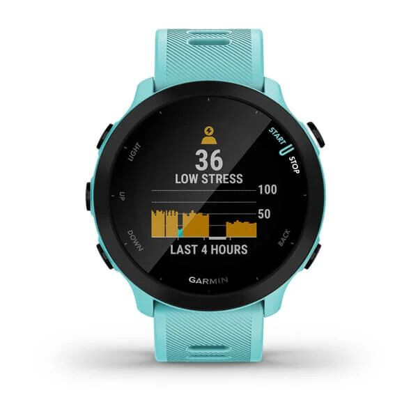 Умные часы Garmin Forerunner 55 аква (010-02562-12) - это смарт-часы, созданные для людей любого уровня подготовки – особенно для новичков - чтобы отслеживать личную статистику и достигать своих целей в фитнесе. Простым нажатием кнопки пользователи могут начать бег или прогулку и отслеживать свое время, расстояние, скорость, темп и частоту сердечных сокращений прямо с запястья. Forerunner 55 также предлагает подробные данные о беге, ежедневные рекомендуемые тренировки, дополнительные встроенные спортивные приложения и многое другое.