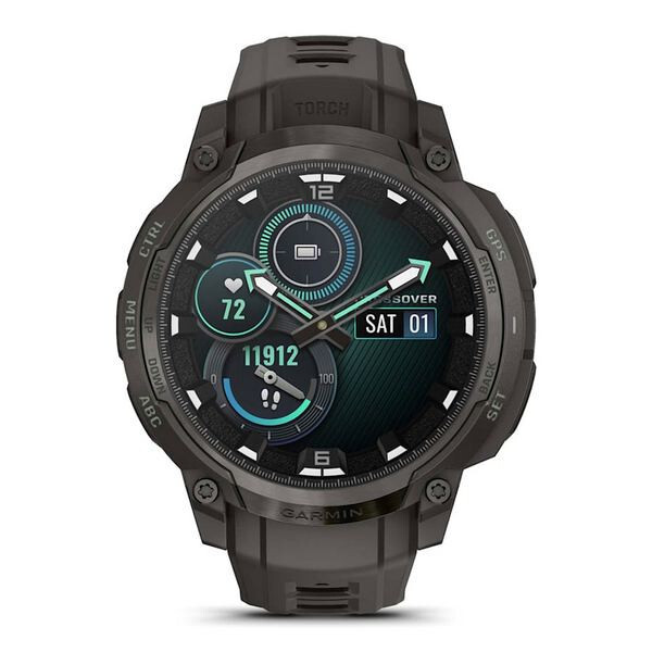 Умные часы Garmin Instinct Crossover AMOLED (010-03398-00) Charcoal - яркий AMOLED дисплей диагональю 1.2 дюйма, функциональные аналоговые стрелки, сапфировое стекло, светодиодный фонарик - это только начало! Instinct Crossover AMOLED - это уникальные умные часы, готовые ко всему.