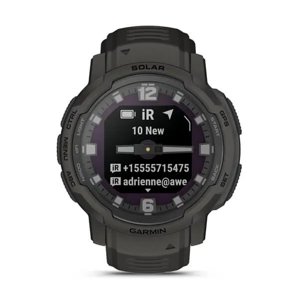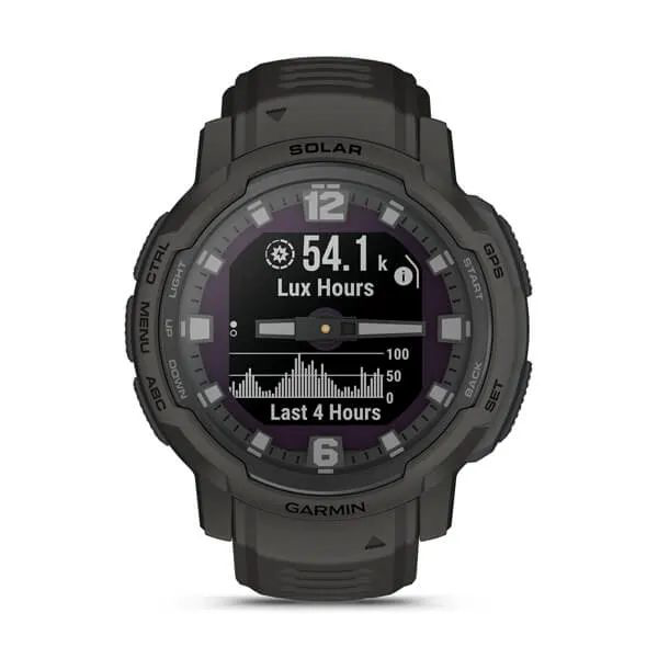 Часы Garmin Instinct Crossover Solar — это мощные умные часы, которые подключаются к устройствам ANDROID™ и APPLE® и напрямую получают уведомления. Он обеспечивает 28 дней автономной работы в режиме умных часов, которое можно увеличить до 70 дней с помощью солнечной зарядки. Режим энергосбережения позволяет неограниченное использование за счет солнечной зарядки. Его прочный корпус диаметром 45 мм, изготовленный из армированного волокном полимера и нержавеющей стали, оснащен цифровым дисплеем высокого разрешения и водонепроницаем до 10 бар, а также ударо- и термостойкий. Часы оснащены технологией RevoDrive для точного измерения времени и более 40 предустановленными приложениями Garmin для отслеживания информации о вашем здоровье и физической форме. Поддержка MULTI-GNSS обеспечивает доступ к глобальным навигационным спутниковым системам (GPS, ГЛОНАСС, Галилей) для активного отдыха. Завершает дизайн графитовый силиконовый ремешок шириной 22 мм. Сохраняйте открытость и наслаждайтесь здоровой жизнью с Instinct Crossover Solar от Garmin!
