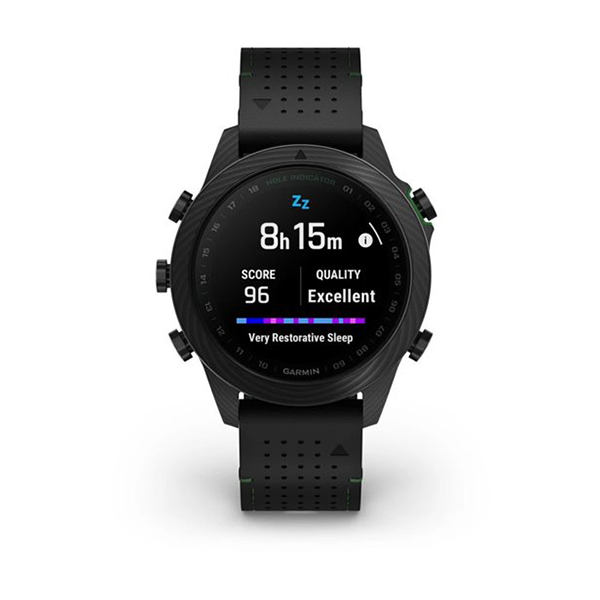 Умные часы Garmin MARQ® Golfer (Gen 2) - Carbon Edition имеют ряд функций, которые помогают улучшить игру игрока, такие как PlaysLike Distance, Hazard View и Virtual Caddy для анализа критических факторов, таких как скорость ветра, расположение поля, а также скорость игрока в гольф и производительность клюшки гольфиста, чтобы выбрать наиболее подходящую клюшку. Помимо функций для игры в гольф, они обладают всеми функциями, ожидаемыми от любых умных часов высшего класса, включая встроенное хранилище музыки, Garmin Pay для бесконтактных платежей, интеллектуальные уведомления, ежедневное отслеживание активности, а также мониторинг сердечного ритма на запястье. Все данные отслеживания активности передаются в приложение Garmin QuickFit.