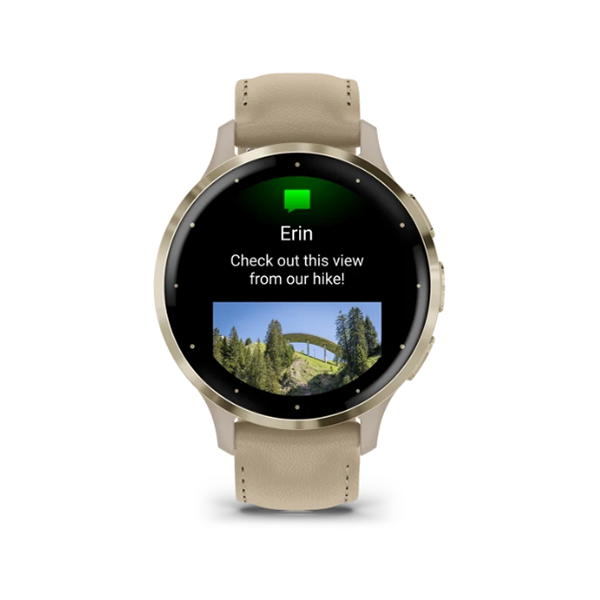 Оставайтесь на связи даже в дороге с помощью часов серии Venu 3. Помимо совершения и приема звонков непосредственно с часов, новинки позволяют пользователям получать электронные письма, текстовые сообщения и оповещения при сопряжении с совместимым смартфоном. Функции безопасности и отслеживания позволяют отправлять сообщение с указанием текущего местоположения пользователя выбранным контактам для экстренных случаев.