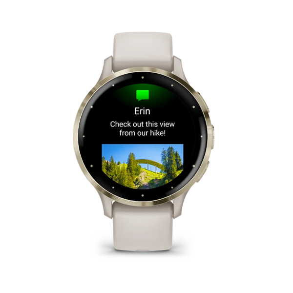 Оставайтесь на связи даже в дороге с помощью часов серии Venu 3. Помимо совершения и приема звонков непосредственно с часов, новинки позволяют пользователям получать электронные письма, текстовые сообщения и оповещения при сопряжении с совместимым смартфоном. Функции безопасности и отслеживания позволяют отправлять сообщение с указанием текущего местоположения пользователя выбранным контактам для экстренных случаев.