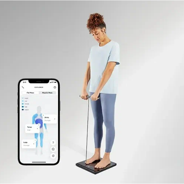В площадку встроены 14 электродов, которые пропускают электрический импульс и на основе скорости делают вывод о соотношении жира, воды и мышц в теле. Но оценка актуальна только для нижней части тела, поэтому в Body Scan есть выдвижная ручка с дополнительными электродами - с ней можно оценить состав и верхней части тела. Весы разделяют торс, руки и ноги, разбивают состав на процентное соотношение жира и воды, висцерального жира, мышечной и костной массы.