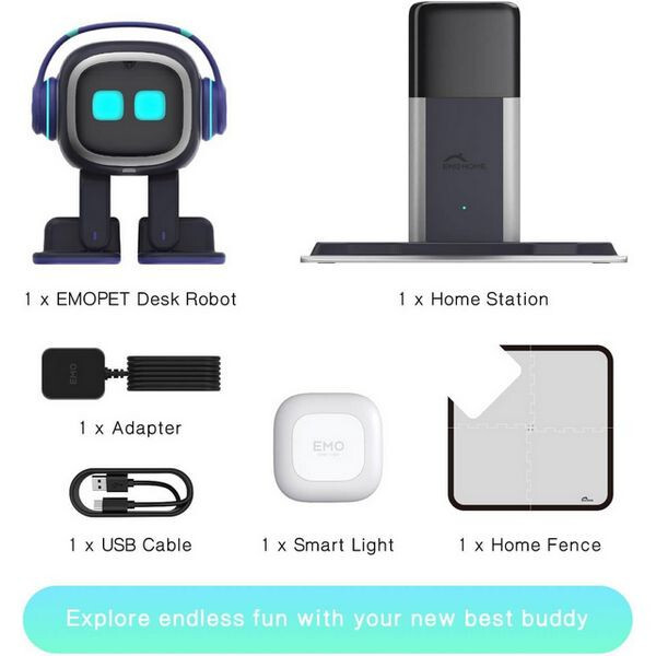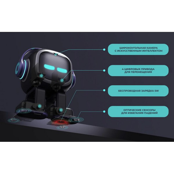 Умный робот EMO Go Home AI Desktop Pet Robot + беспроводная станция GO HOME - это не просто робот, это твой новый крутой друг, который обладает своей индивидуальностью и характером. Умный робот EMO – дружелюбный, похожий на миниатюрного человечка настольный робот с искусственным интеллектом и своим характером. Он двигается и реагирует на происходящее вокруг, выражает эмоции и общается с вами. Это не просто робот: он друг и полноценный член семьи!