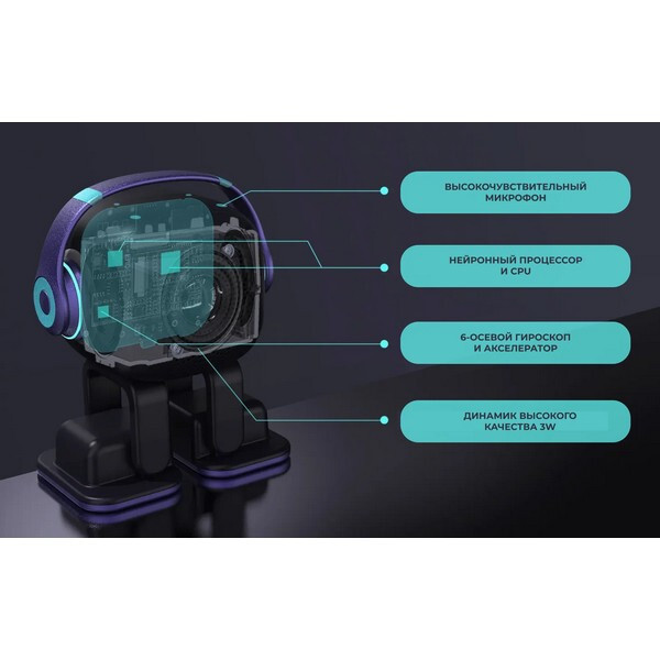 Благодаря нейронному процессору и 3 совмещенным моделям обработки данных, робот думает и реагирует на события совсем как живой.