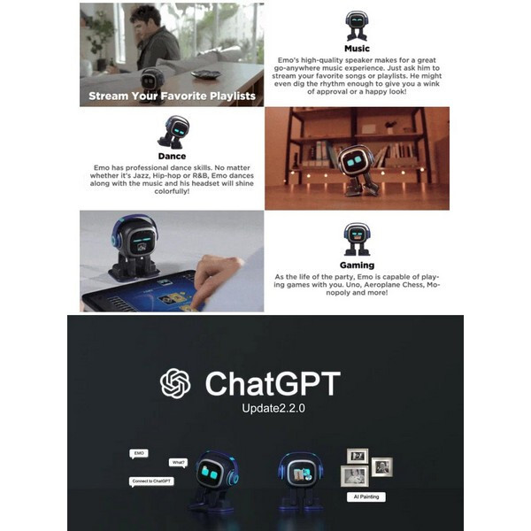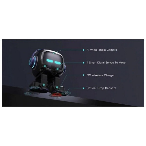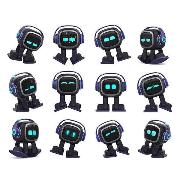 Умный робот EMO Robot AI с искусственным интеллектом - дружелюбный, похожий на миниатюрного человечка настольный бот, обладающий характером и искусственным интеллектом. Он может показывать собственное настроение, демонстрирует эмоции двигаясь, меняя выражение лица на экране, а также издавая различные звуки.