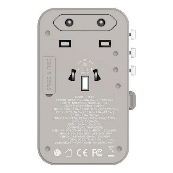 Универсальное сетевое зарядное устройство Momax UA18 1-World+ 70W GaN Tech 3-Port+AC