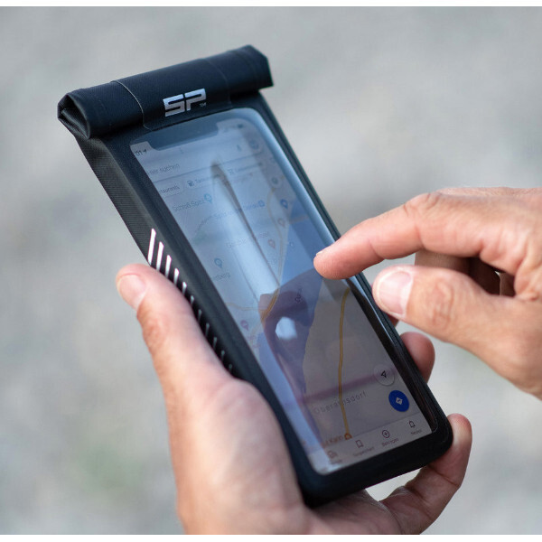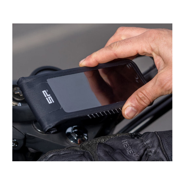 С помощью запатентованного поворотного замка (механизм для установки). Просто вставьте смартфон в чехол, закатайте отверстие и закройте язычок. Таким образом, ваш телефон остается защищенным от дождя, пота, грязи и пыли, сохраняя при этом удобство использования сенсорного экрана. Вставка на флисовой подкладке и предварительно приклеенная рамка из EVA позволят вам найти идеальное место для вашего смартфона.