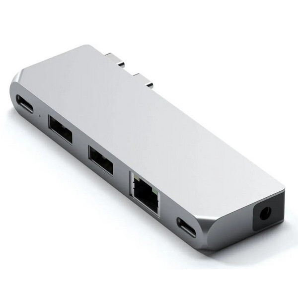 USB-хаб Satechi Pro Hub Mini (ST-UCPHMIS) Silver / Cеребристый - расширьте возможности вашего M2 MacBook Pro с помощью концентратора, оснащенного полнофункциональным портом USB4, гигабитным Ethernet, USB-C для передачи данных, двумя USB-A для передачи данных и портом аудиоразъема. Благодаря множеству опций для быстрой передачи данных и современному алюминиевому дизайну Pro Hub Mini объединяет все необходимые порты в одном элегантном и удобном хабе. Просто подключите его к MacBook Pro 2023 года выпуска.