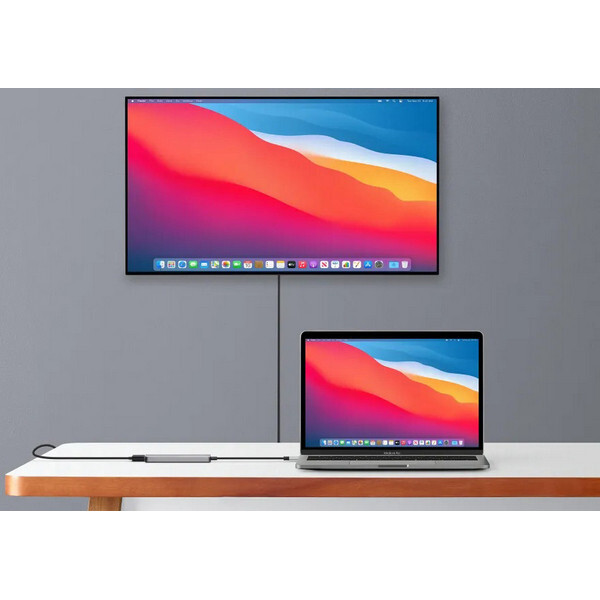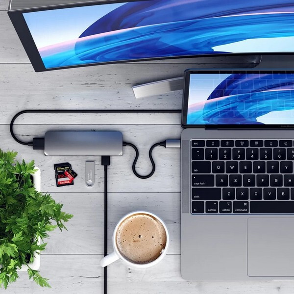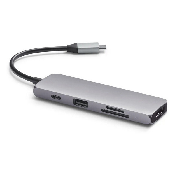 Корпус Satechi Type-C Multiport Pro выполнен из алюминия, что обеспечивает высокую прочность и долговечность, а для подключения используется встроенный кабель USB-C. Порты расположены на оптимальном расстоянии друг от друга, что позволяет без труда задействовать все разъемы одновременно.