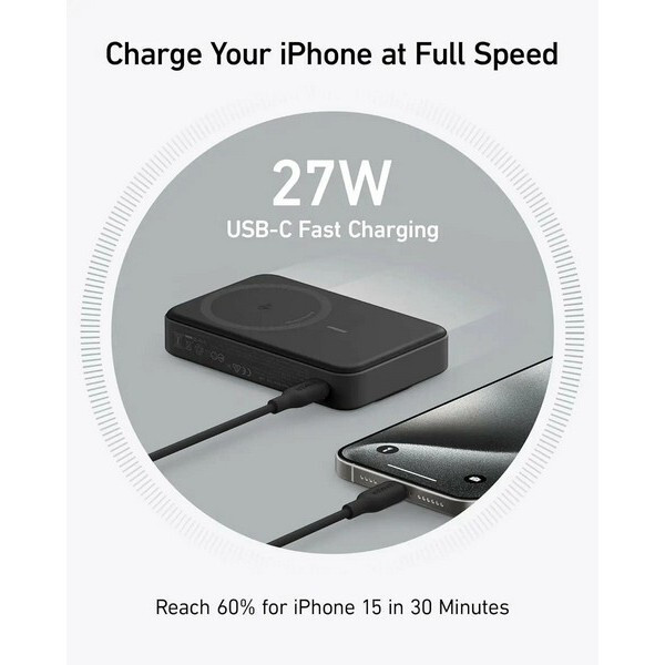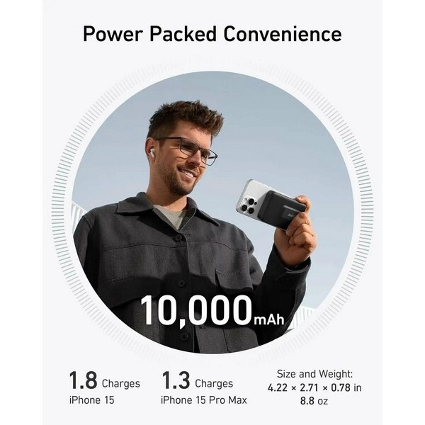 Выбирая Anker Qi2 Magsafe Ultra-Fast 15 W, вы получаете надежный и удобный аккумулятор, который поможет вам всегда оставаться на связи и в полной боевой готовности.