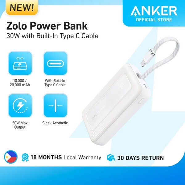 Внешний аккумулятор Anker Powercore Zolo 10000 мАч 30 Вт (A1688H21) белый