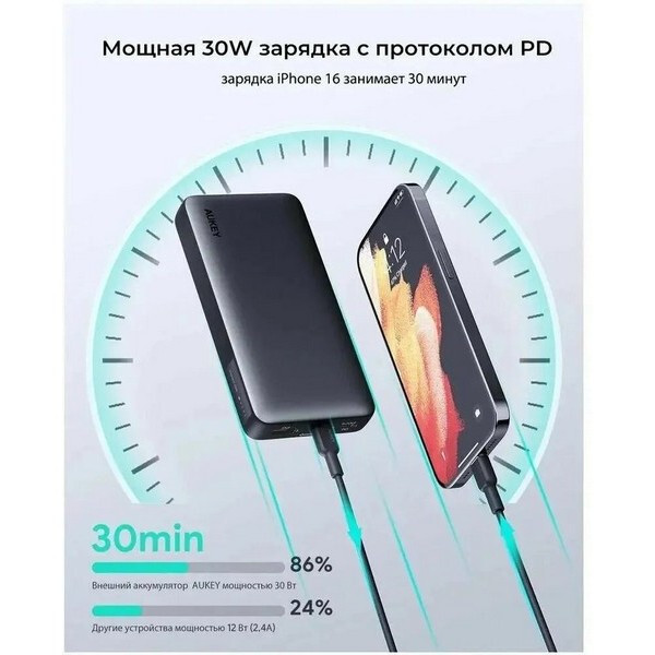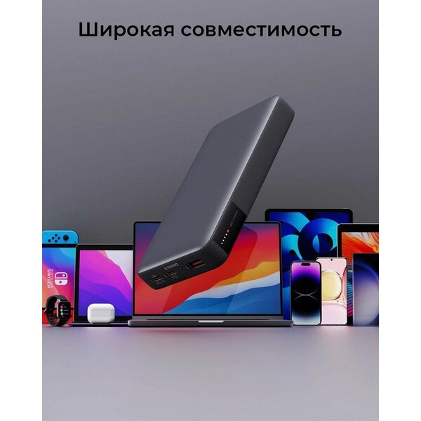 Внешний аккумулятор Aukey Sprint X — это портативное устройство, которое обеспечивает быструю и эффективную зарядку iPhone, Macbook Air и некоторых небольших ноутбуков. Емкость аккумулятора составляет 20 000 мАч.