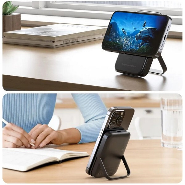 С емкостью 5000 мАч, пауэрбанк Choetech B742 обеспечивает достаточную мощность для зарядки ваших устройств, оставаясь при этом легким и удобным для переноски. Его компактные размеры делают его идеальным для длительных поездок, не занимая много места. Кроме того, складной дизайн позволяет удобно использовать телефон во время зарядки — вы можете смотреть видео, просматривать медиа или делать видеозвонки, не прерывая процесс зарядки.