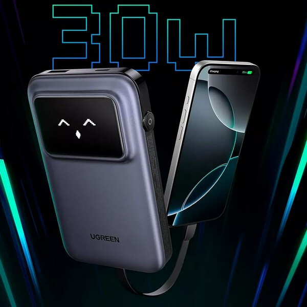 Внешний аккумулятор Ugreen PB511 UNO 10000mAh 30W (35603B) серый - компактный и мощный внешний аккумулятор, который обладает емкостью 10,000 мАч и поддерживает двухстороннюю быструю зарядку мощностью до 30 Вт. Он способен зарядить iPhone 16 с 0 до 60% всего за 30 минут, что значительно сокращает время ожидания.