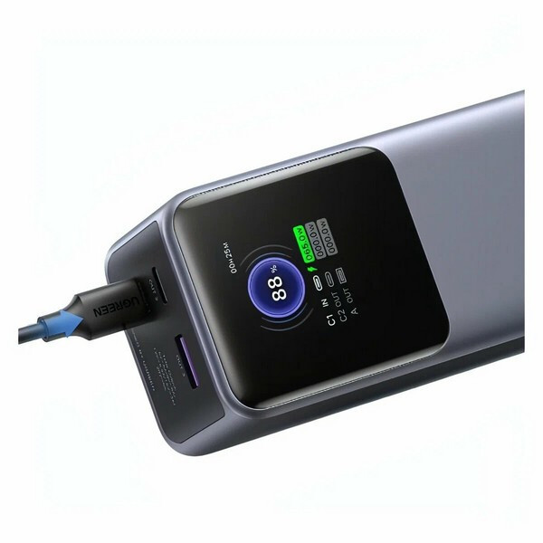 Внешний аккумулятор Ugreen PB722 20000mAh 200W (35525B) серый совместим с ноутбуками, MacBook Pro/Air, iPhone, Samsung и другими устройствами. Благодаря технологии PD 3.1 этот внешний аккумулятор с функцией быстрой зарядки обеспечивает полную скорость зарядки ваших устройств. MacBook Pro 16'' можно зарядить до 56% всего за 30 минут.