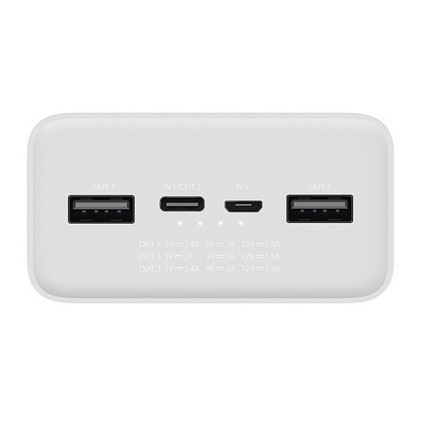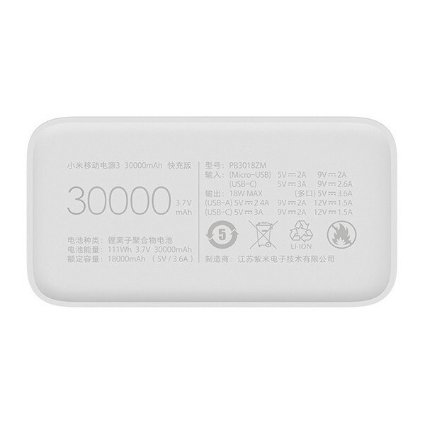 Внешний аккумулятор Xiaomi Mi Power Bank 3 30000 mAh (PB3018ZM) White выполнен из безопасных материалов высшего качества - поликарбоната и АБС-пластика. Он устойчив к царапинам, истиранию, выцветанию, а также имеет простую, но функциональную и приятную на ощупь фактуру поверхности. Внешний аккумулятор также оснащен антискользящим покрытием и имеет весьма компактные габариты, благодаря чему его удобно носить с собой. В условиях отсутствия сетевого источника питания, устройство быстро восполнит ёмкость севшего аккумулятора смартфона, планшета и других мобильных девайсов. Внешний аккумулятор емкостью 30000 мАч, которая обеспечивает большее количество зарядок за более короткое время. С его помощью получится зарядить до 4.5 раз Xiaomi Mi10, а в случае с iPhone SE (2020) можно рассчитывать на 10.5 зарядок.
