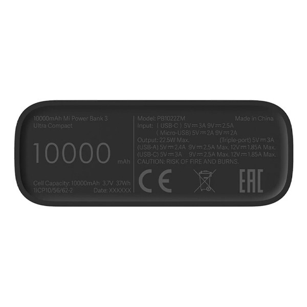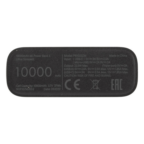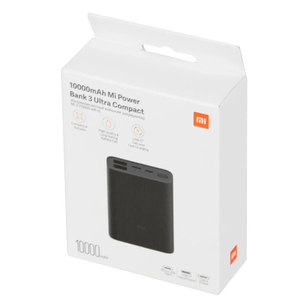 Внешний аккумулятор Xiaomi Mi Power Bank 3 Ultra compact 10000mAh (BHR4412GL) - самая компактная версия в своей серии. У аккумулятора 4 порта подключения: 2 × USB-A, 1 × USB-C, 1 × microUSB. Сам он может заряжаться как от microUSB, так и от USB Type-C. Внешний аккумулятор поддерживает функцию PD с мощностью 24 Вт (Type-C), а мощность зарядки через microUSB может доходить до 18 Вт. Для зарядки внешних устройств используются только порты USB-A и USB-C, все из которых можно использовать одновременно, что дает в общей сложности зарядку трех гаджетов. Максимальная мощность канала — до 22,5 Вт.