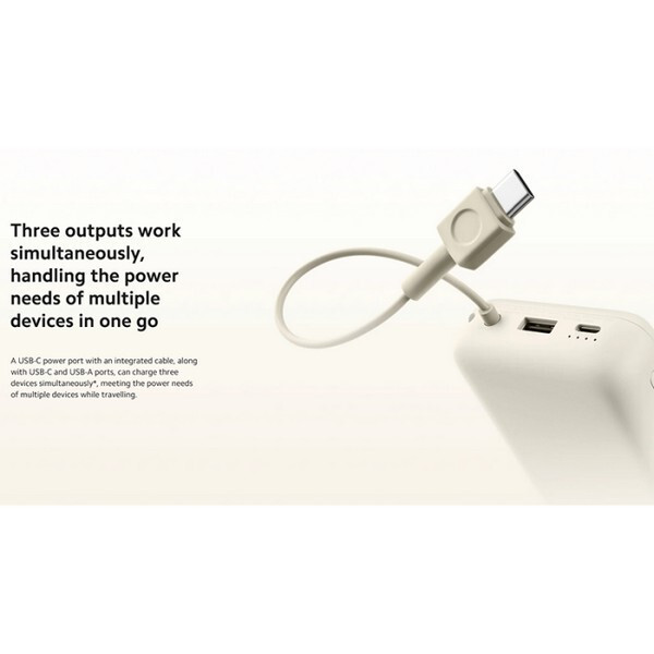 Порт питания USB-C со встроенным кабелем, а также порты USB-C и USB-A позволяют заряжать три устройства одновременно, удовлетворяя потребности в питании нескольких устройств во время путешествий.