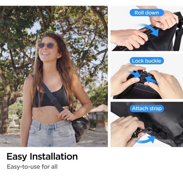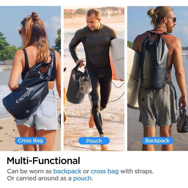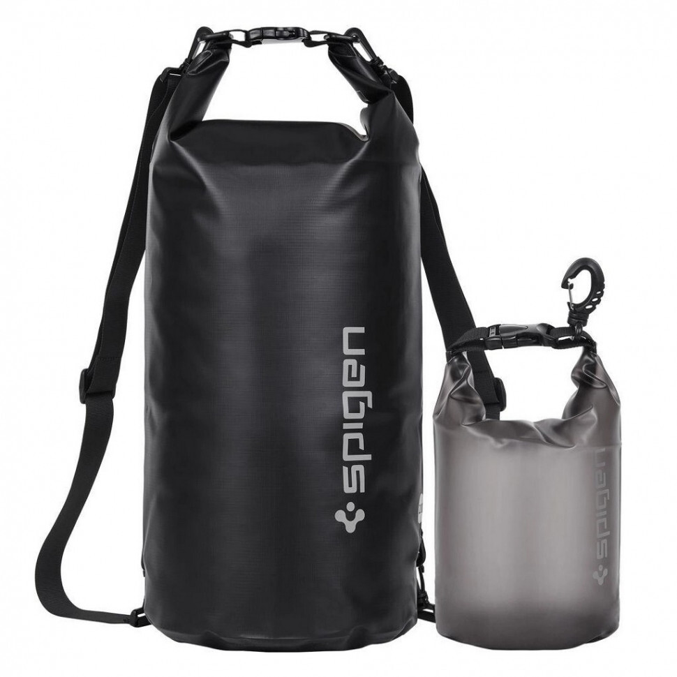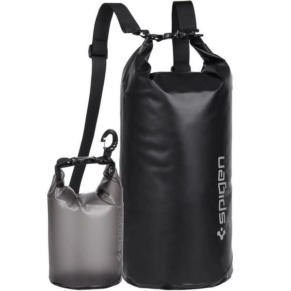 Водонепроницаемые сумки Spigen A630 Universal Waterproof Waist Bag (AMP04534) Black - функциональный набор из двух водонепроницаемых сумок (20л и 2л) A630 от бренда Spigen. Благодаря своей легкой и водонепроницаемой конструкции, они идеально подходят для водных видов спорта, походов или кемпинга. Система двойного закрывания гарантирует, что предметы внутри останутся защищенными от последствий затопления. Большая сумка оснащена удобными широкими лямками, благодаря которым ее можно носить как рюкзак или сумку через плечо, и ручкой для удобной переноски. Удобные, практичные, а главное водонепроницаемые сумки защитят от песка, пыли, затопления или влаги – A630 соответствует стандартам IPX6.