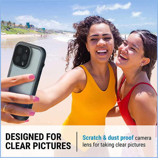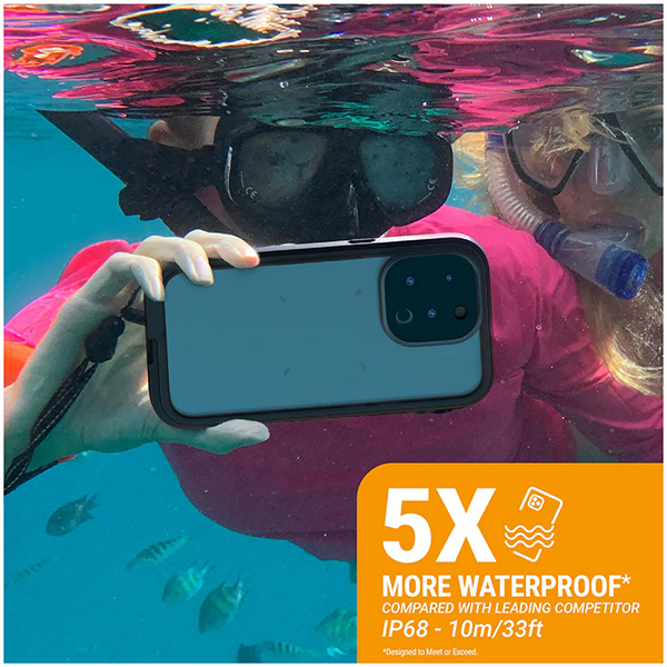Повышенная защита от проникновения воды: аксессуар имеет высокую степень водонепроницаемости IP68 - даже на 10 метровой глубине смартфон будет надежно защищен, и вы спокойно можете осуществлять подводную фотосъемку. Герметично закрывающийся клапан защищает зарядный порт.