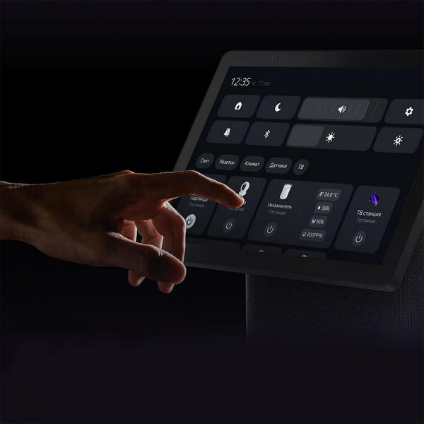 В Станцию Дуо Макс уже встроен хаб управления Zigbee™, благодаря которому она напрямую взаимодействует с датчиками и другими устройствами умного дома, работающими по протоколу Zigbee™. Сделайте колонку центром умного дома и общайтесь с ним голосом: например, спрашивайте у Алисы, какая сейчас температура в комнате, или смотрите данные на экране. А ещё на экране можно управлять приборами умного дома — для этого предусмотрен специальный интерфейс.