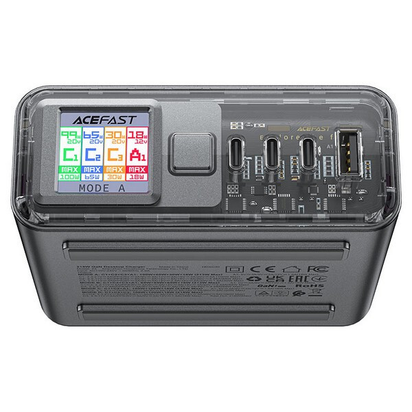 Дисплей в реальном времени отображает напряжение и состояние питания каждого порта, обеспечивая удобство контроля. С использованием многожильной медной проволоки сечением 1,25 мм² обеспечивается более быстрая и безопасная передача энергии. Этот источник питания поддерживает зарядку мобильных телефонов, планшетов, ноутбуков, коммутаторов и других устройств. Сертификация подтверждает его безопасность и соответствие стандартам. Особенности заключаются в переключаемых режимах зарядки, высокой мощности, отображение данных в реальном времени, применение технологии GaN для повышения эффективности.