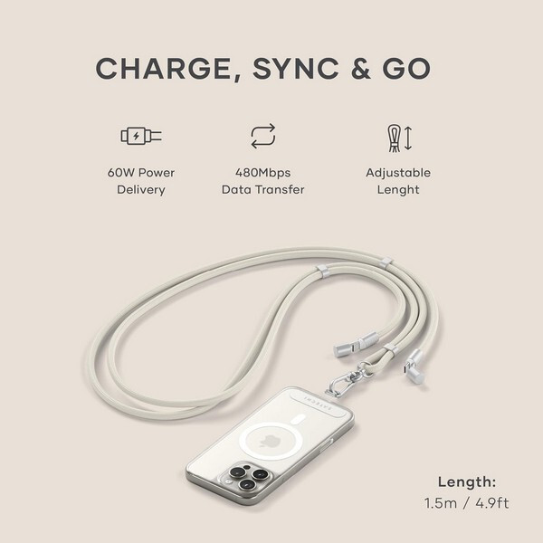 Зарядный кабель/ремень через плечо Satechi OntheGo Crossbody Lanyard Cable 60W 1.5 м (ST-LOTGLW) Sand, разработанный для современных многозадачных пользователей, больше, чем просто стильный аксессуар. Это первое в своем роде инновационное решение, которое позволит вам оставаться на связи, куда бы вас ни забросила жизнь. Благодаря встроенному кабелю USB-C/USB-C для быстрой зарядки и передачи данных, он устраняет необходимость в дополнительных кабелях, обеспечивая при этом безопасность, свободу рук и зарядку телефона. В отличие от стандартных ремешков, этот кабель гармонично сочетает в себе функциональность, прочность и повседневное удобство в элегантном дизайне, удобном для путешествий. Путешествуете ли вы по оживленному городу, идете на концерт или летите на самолете, кабель OntheGo™ USB-C Lanyard Cable позволяет легко оставаться на связи.