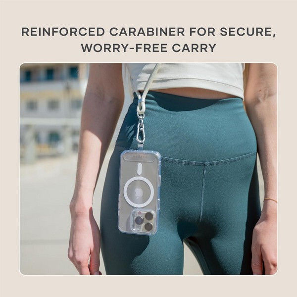 Ваш кабель всегда под рукой. Это не просто шнурок, а полностью интегрированный кабель USB-C/USB-C, который поддерживает как питание, так и передачу данных. Закрепите его на телефоне и носите через плечо или на шее, чтобы руки были свободны. Когда вы захотите положить телефон в карман или передать его кому-нибудь, просто отстегните стильный карабин и оставьте карту-коннектор на месте, чтобы вы могли быстро прикрепить его снова.